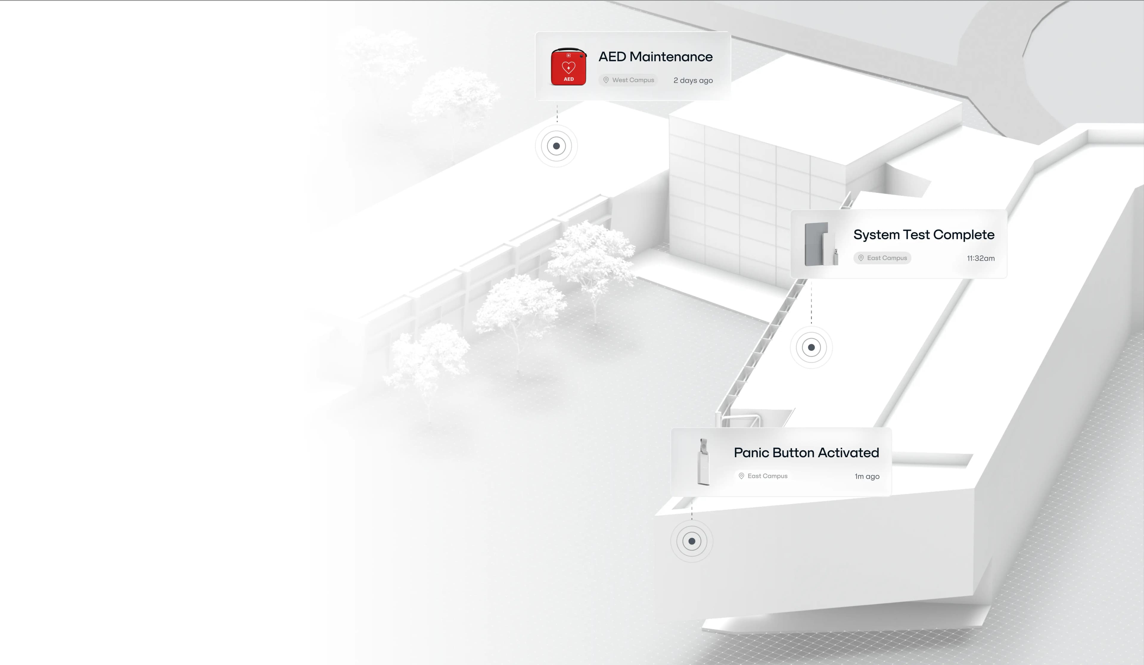 Track the health and status of panic buttons, sensors, cameras, and speakers across campus in real time. Automate maintenance reminders so nothing slips through the cracks.